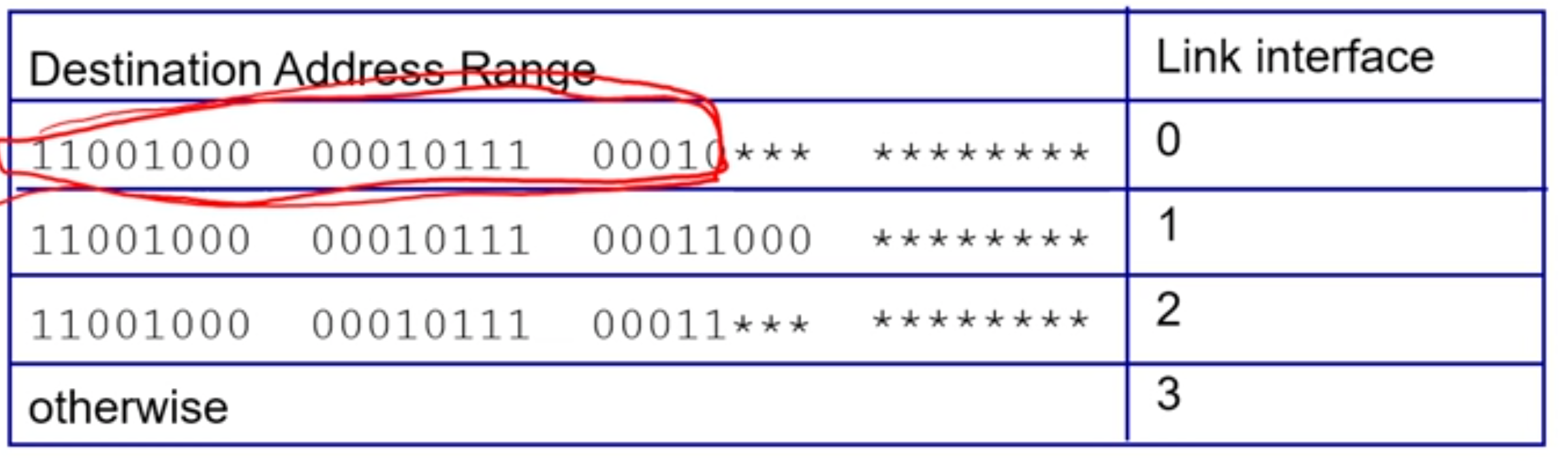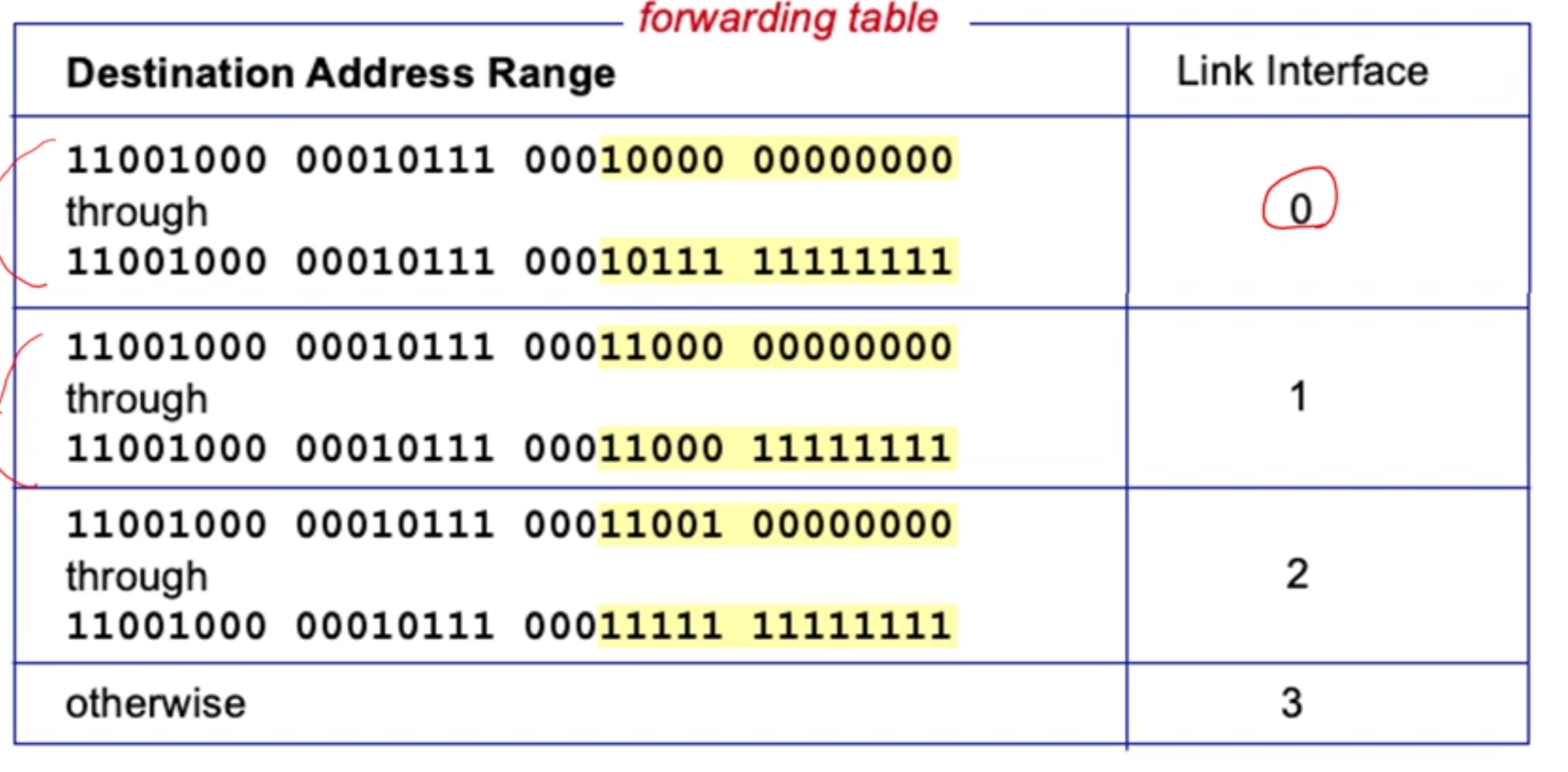 빨간 네모의 하위 비트들은 어떤 값이 오는지 상관하지 않고 상위의 비트가 이 패턴을 가진다면 0번 인터페이스로 보내겠다는 것인비다.