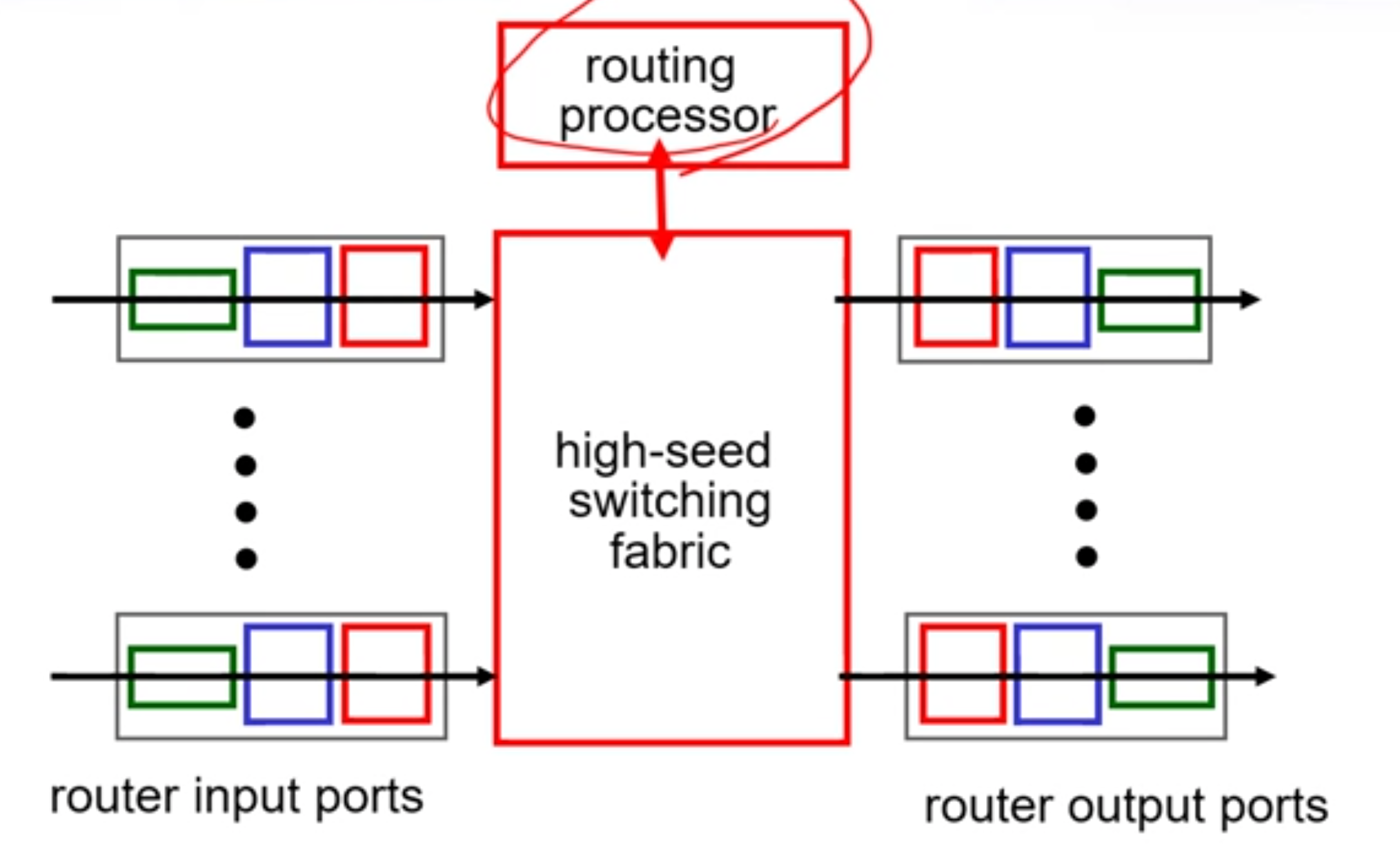 출력포트는 데이터그램이 출력 버퍼에 저장되고 저장된 데이터그램을 링크 계층을 통해서 전송을 하면 됩니다. 출력 포트는 기본적으로 데이터그램이 전송 속도보다 더 빠르게 switching 구조로 도착하게 되면 버퍼에 저장이 됩니다.