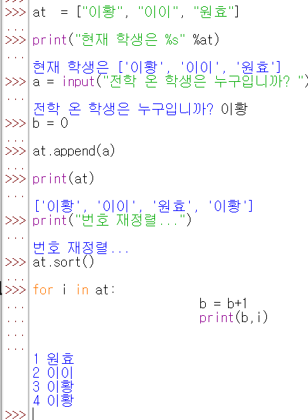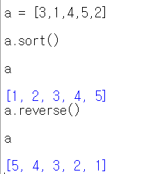 리스트 sort() 오름차순 , reverse() 내림차순 len() length