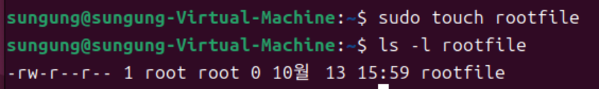 touch 명령은 쉘을 이어받기에 rw 커미션만 주도록 작동을 합니다.