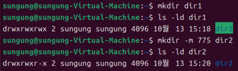 디렉토리를 생성하면서 접근권한을 같이 부여할 수 있음