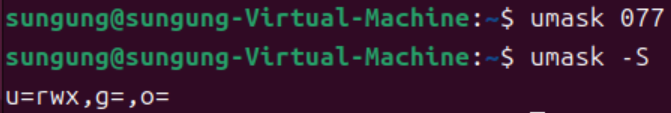umask 0022 또는 umask u=rwx,g=rx,o=rx
